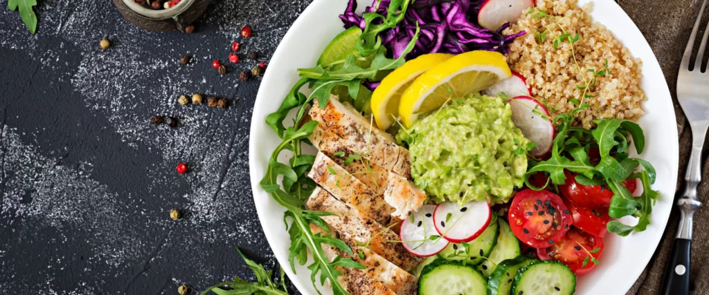 - Proteínas magras para manter a saciedade e evitar a degradação muscular.